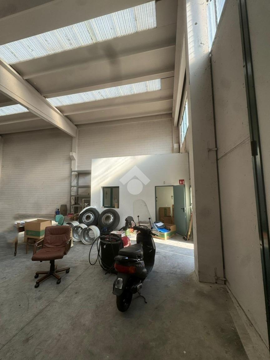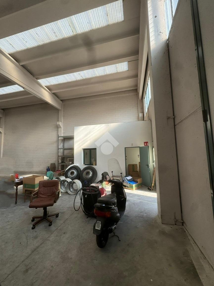 CHIUDUNO: Proponiamo in locazione capannone di ca. 440mq con un altezza di 7m sotto trave e un piazzale esterno privato sul fronte di 160mq ca. con doppio accesso sia carraio per mezzi pesanti che pedonale. La soluzione è completa di uffici, servizi igienici, mensole per il carroponte, impianti base e viene consentito l' accesso da un portone sezionale alto 4m. Tetto nuovo.
